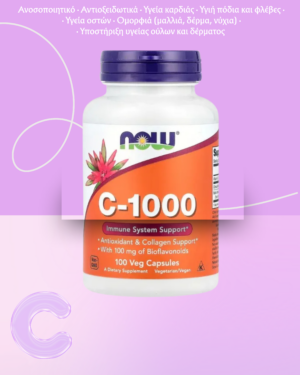 Sku: 733739006905NOW Foods Βιταμίνη C-1000 με 100mg Βιοφλαβονοειδή – 100 φυτικές κάψουλες