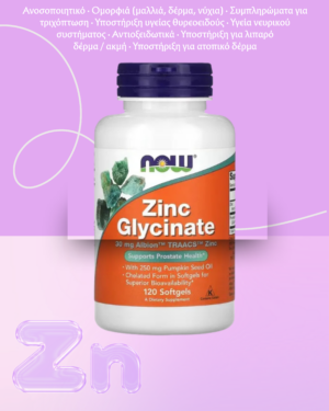 Sku: 733739015549NOW Foods Ψευδάργυρος Γλυκινικός – 120 μαλακές κάψουλες